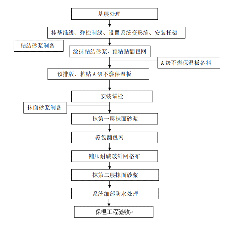 圖:涂料飾面A級不燃保溫板外墻外保溫系統(tǒng)涂料飾面施工流程圖